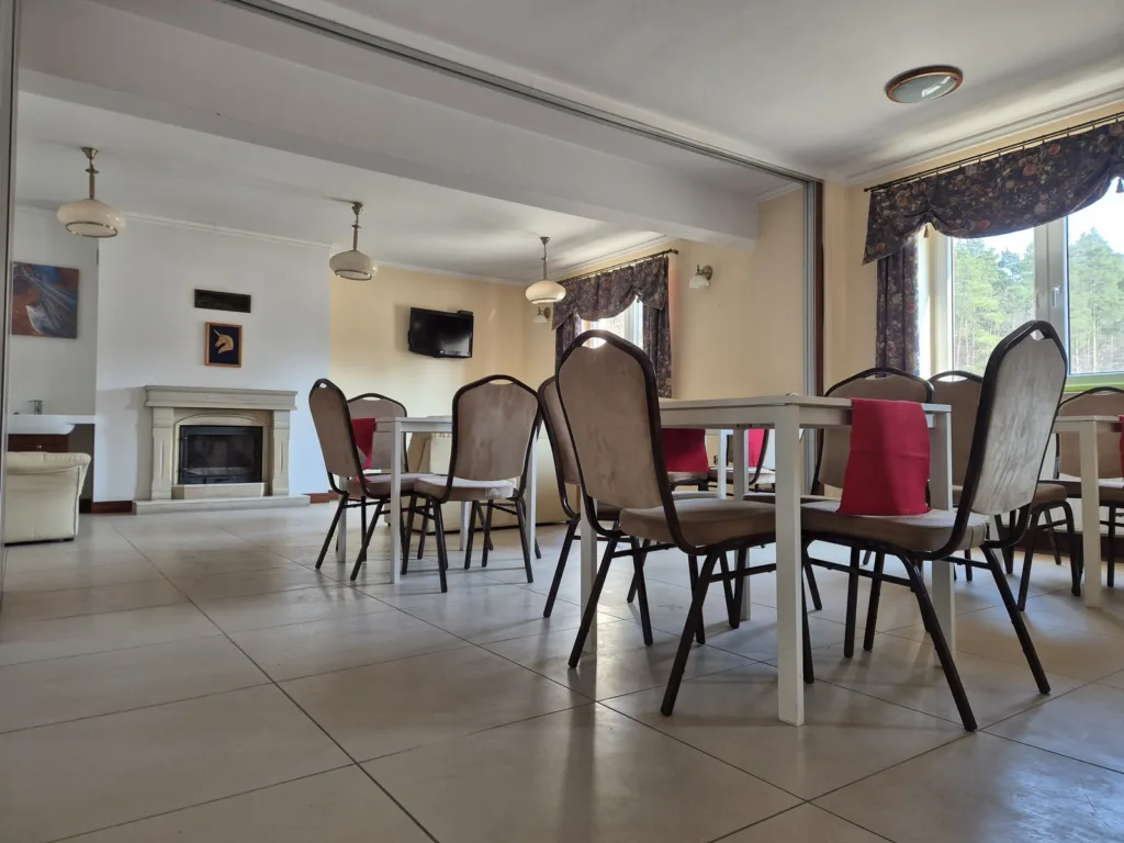 Budynek otoczony jest pięknym ogrodem oraz lasem, co zapewnia poczucie spokoju i harmonii.